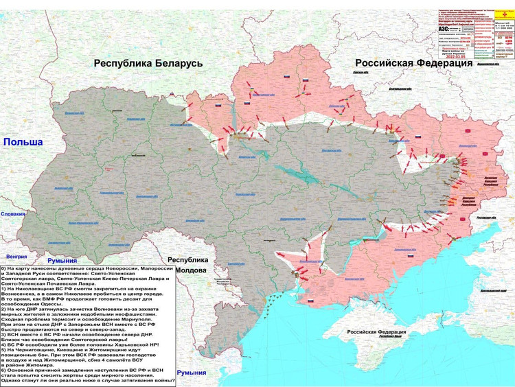 Phía nam Ukraina, không quân và pháo binh – tên lửa quân đội Nga đang gây tổn thất nặng nề cho lực lượng Ukraina triển khai ở Nikolaev. Ukraina đang thống kê thương vong trong cuộc tấn công tên lửa vào các cơ sở quân sự của lữ đoàn 79, có thể lên tới 200 quân nhân.