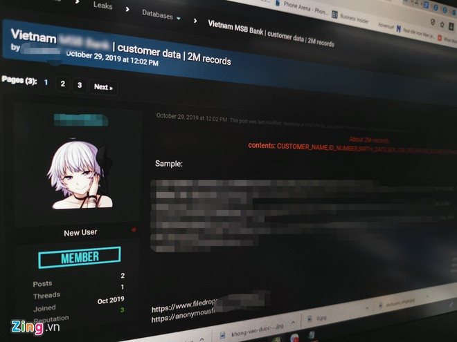 Diễn đàn Raid*** là nơi các hacker đăng tải thông tin cá nhân, dữ liệu khách hàng với mục đích rao bán là chính. Tuy vậy, thông tin khách hàng của ngân hàng trên được đăng miễn phí, bất kỳ ai cũng có thể tải về.