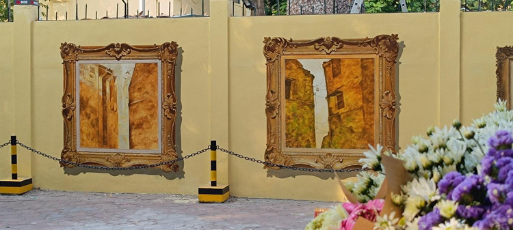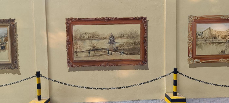 Đặc biệt hơn, nơi đây còn có tác phẩm mô phỏng “tranh Phố” của họa sĩ Bùi Xuân Phái với sự cổ kính mà rất hiện thực.