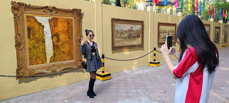 Những ngày này, rất nhiều bạn trẻ, du khách đến chụp ảnh, check-in tại bức tường bao quanh Trường THPT Phan Đình Phùng (Hà Nội), cùng khám phá những nét đẹp của thành phố xưa qua các bức họa 3D sống động.