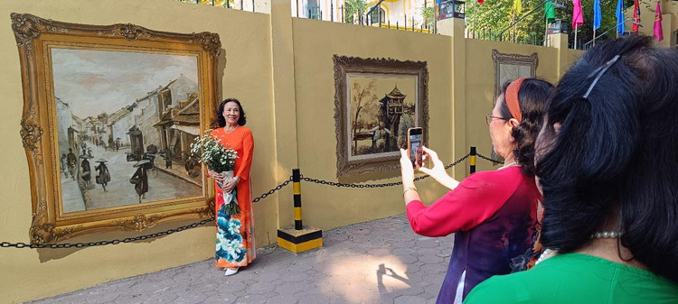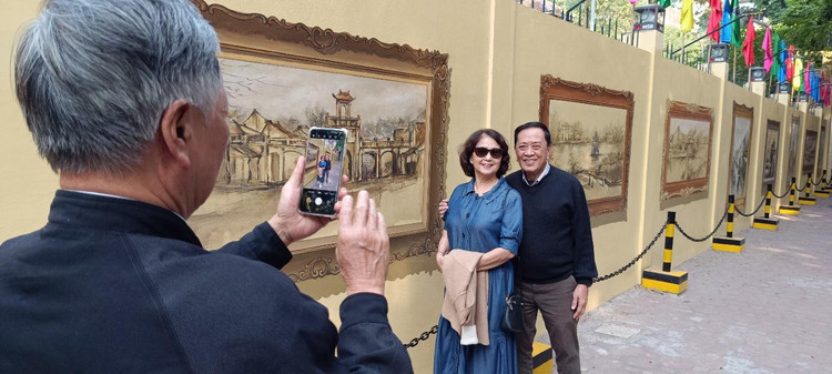 Các tác phẩm nổi bật dưới ánh nắng vàng, thu hút người dân đến với con phố này để lưu giữ hình ảnh về nét đẹp cổ kính xen lẫn hiện đại. Chị Nguyễn Hồng Giang đến từ TP HCM, cho biết, qua những bức tranh này, chị thấy được phần nào lịch sử hào hùng của Hà Nội. “Tôi mong những con phố của thành phố luôn sạch sẽ, khang trang và các bức tường được khoác lên mình tranh vẽ kể về lịch sử của Thủ đô nghìn năm văn hiến”, chị Giang nói.