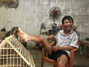 Giao tiếp đôi lúc chả cần nói nên lời, có nhiều cách liên lạc, giao tiếp khác. Ngay trước mắt tôi đây, anh Cầm đang cho thấy điều đó. Anh nuôi 6 con chim. Có một con sáo biết nói, cứ gọi tên anh. Con chim này không vào chuồng, nó đỗ ở trong nhà, bay qua giường anh, rồi nhạy lên chân anh.