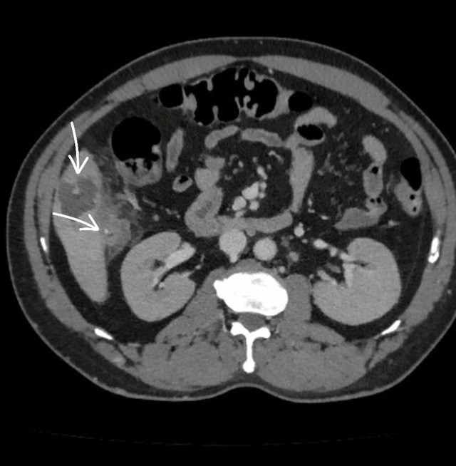 Bệnh nhân bị áp xe gan do bị mảnh xương nhỏ đâm phải. Ảnh: BVCC/Nguồn SKĐS.