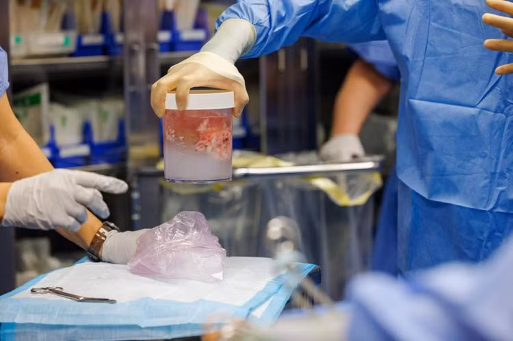 Quả thận lợn biến đổi gene trong phòng phẫu thuật tại Bệnh viện Đa khoa Massachusetts chuẩn bị được cấy ghép vào cơ thể ông Tim Andrews, ngày 25/1/2025. Ảnh: Bệnh viện Đa khoa Massachusetts