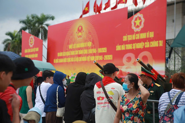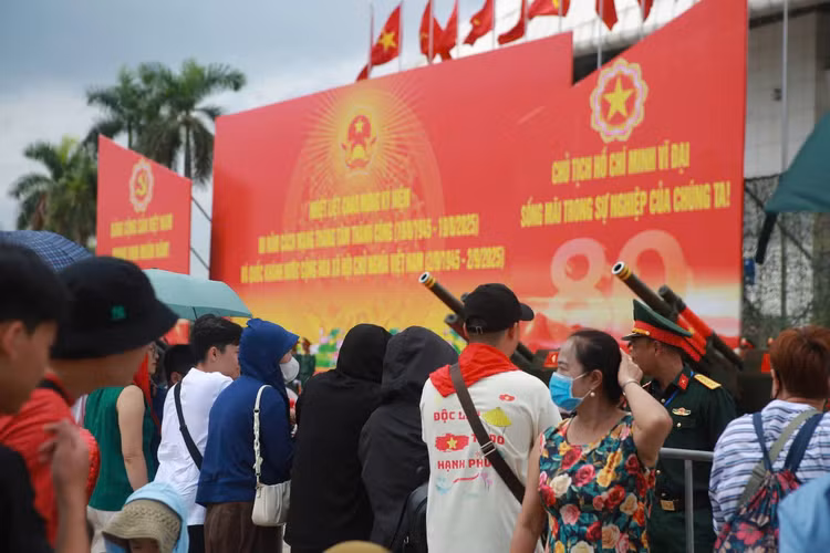 Khoảng 16h ngày 1/9, trước ngày diễn ra Lễ diễu binh, diễu hành kỷ niệm 80 năm Cách mạng Tháng Tám và Quốc khánh 2/9 (nhiệm vụ A80), người dân và du khách đổ về khu vực Sân vận động Quốc gia Mỹ Đình (Hà Nội) để chiêm ngưỡng, chụp hình cùng dàn pháo lễ đang được tập kết ở đây.