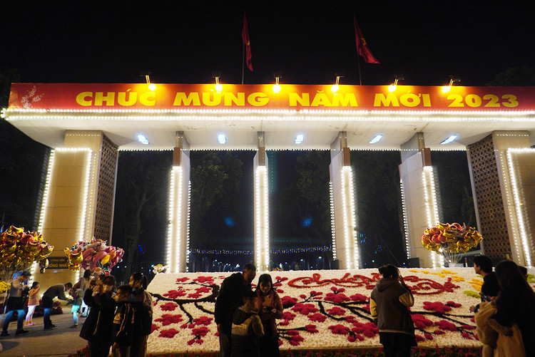 | Tại cổng công viên Thống Nhất trên phố Trần Nhân Tông, rất nhiều người tranh thủ chụp ảnh trước giao thừa. |