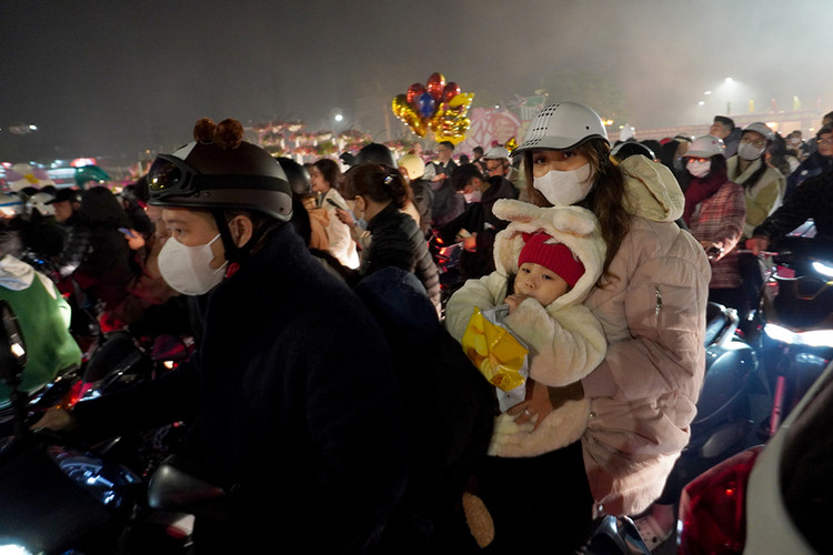 | Còn tại điểm bắn pháo hoa trên đường Lạc Long Quân người dân tập trung đông từ rất sớm. |
