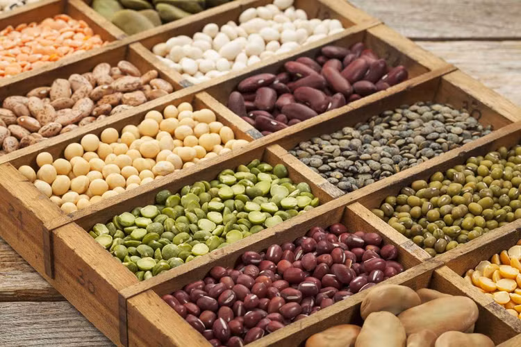 Đậu đỏ, đậu đen, đậu nành, đậu phộng, đậu hà lan, đậu xanh, và các loại đậu khác chứa nhiều chất xơ và protein.