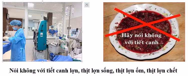 Tuyệt đối không ăn tiết canh lợn, thịt lợn sống, thịt lợn tái chưa nấu chín kỹ”.