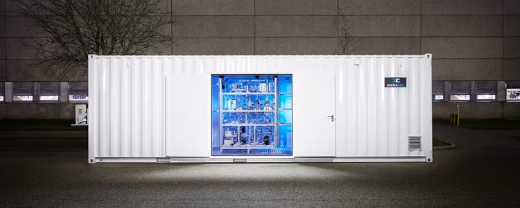Hệ thống chuyển đổi khí nhà kính, nước thành nhiên liệu máy bay và các loại nhiên liệu, hóa chất bền vững khác của Ineratec, sử dụng nguồn năng lượng tái tạo. Ảnh Ineratec