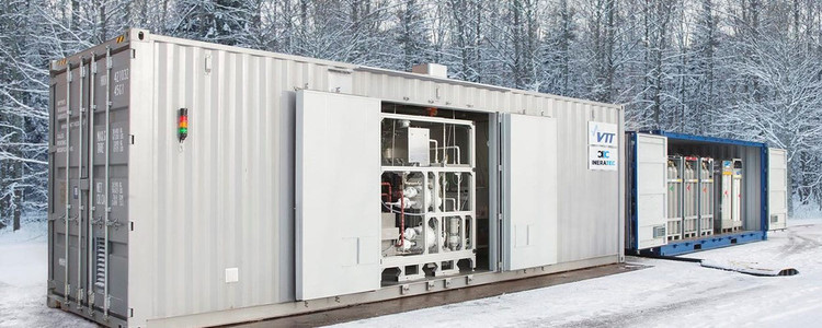 Hệ thống chuyển hóa nhiên liệu đóng gói trong một container vận chuyển trung bình, nhìn từ bên ngoài là vô số thiết bị bằng thép không gỉ, một nhà máy tổng hợp chuyển CO2 và H2 thu được thành nhiều loại nhiên liệu và sản phẩm khác như dầu diesel sạch, xăng trung tính CO 2, dầu hỏa điện tử (e-kerosene) bền vững. Những thành phẩm này là hàng loạt các phân đoạn hydrocarbon, có thể được tinh chế và sử dụng trong hàng không cũng như các lĩnh vực vận tải khác và trong ngành công nghiệp hóa chất.