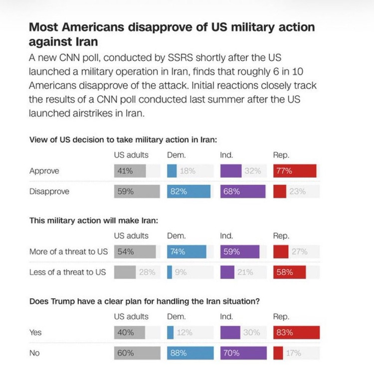 Thăm dò của CNN cho thấy 59% người Mỹ không chấp nhận hành động quân sự chống lại Iran.