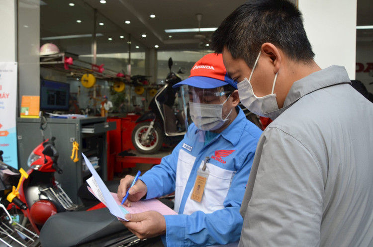Theo anh Vân, sau khi kiểm tra, khoảng 85% - 95% xe không đạt chỉ tiêu khí thải. Đối với những xe đó, nhân viên cửa hàng sẽ tư vấn cho khách các dịch vụ để điều chỉnh lại thông số khí thải để đạt tiêu chuẩn. Đồng thời sẽ tặng 1 lọ dầu và phiếu bảo dưỡng trị giá 200 ngàn đồng.