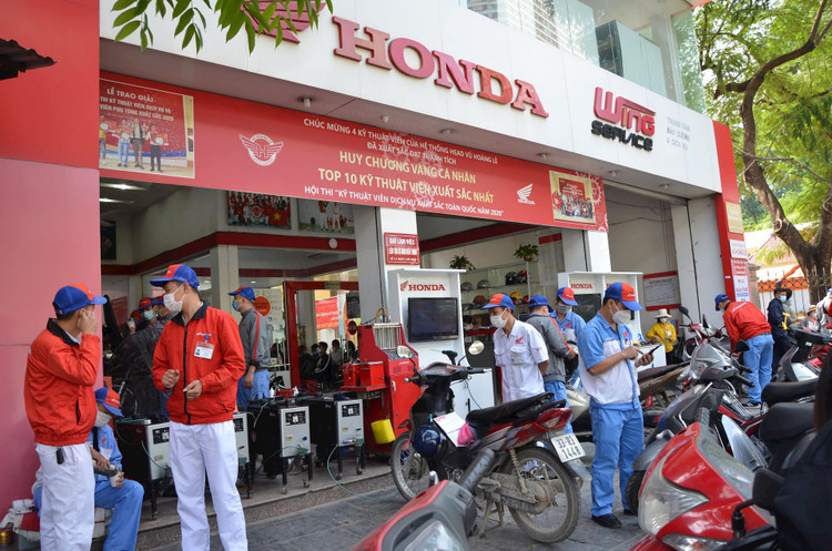Ghi nhận sáng 13/11, ngày triển khai thứ 2 của chương trình, tại điểm đo Đại lý sửa chữa xe máy Vũ Hoàng Lê (phường Văn Quán, quận Hà Đông), khá đông khách hàng đã đưa xe máy đến từ sớm để kiểm tra khí thải. Do là ngày cuối tuần nên lượng khách đến rất đông.
