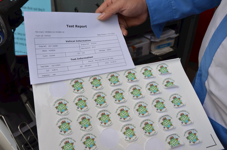 Những chiếc xe đạt chỉ tiêu khí thải sẽ được cấp phiếu kết quả và dán tem chứng nhận của hãng.