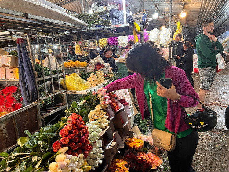 Hoa tươi nên nhiều khách đã lựa được bó ưng ý sau khi dạo qua vài sạp hoa.