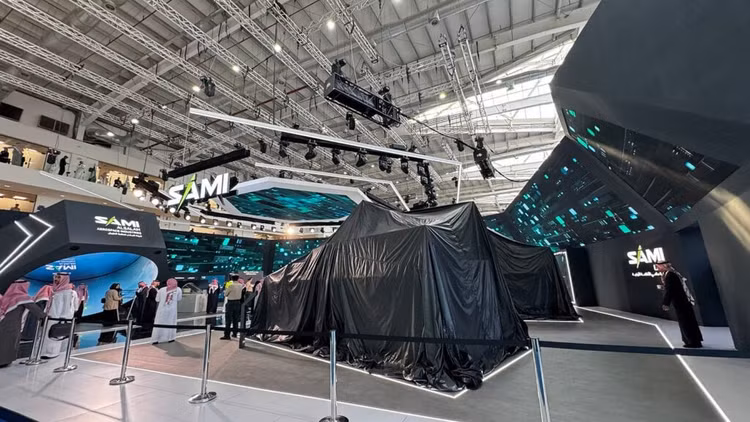 Một nền tảng quốc phòng bí ẩn đang chờ được ra mắt tại gian hàng của Tập đoàn Công nghiệp Quân sự Ả Rập Xê Út (SAMI) vào ngày 8/2/2026 tại Triển lãm. Với tư cách là nước chủ nhà, các gian trưng bày của Riyadh đương nhiên được bài trí cực kỳ hoành tráng. (Agnes Helou / Breaking Defense)