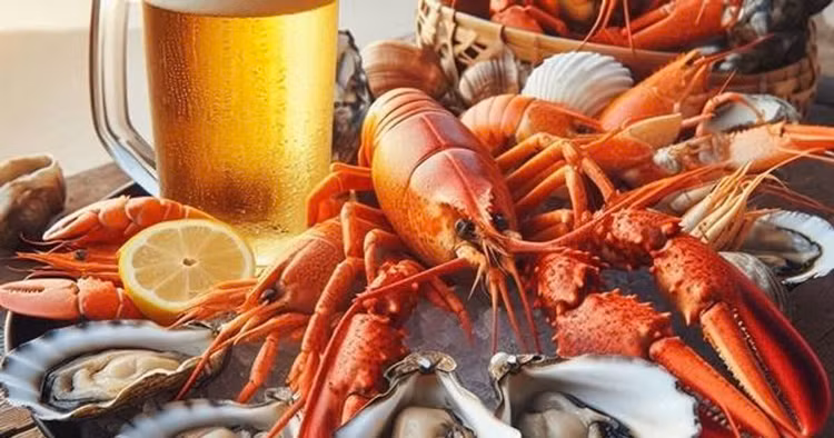 Không ăn nhiều hải sản cùng với bia