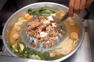 Lẩu bung được bán tại một số quán ăn ở khu Nhà Chung, Ô Quan Chưởng (Hà Nội) với giá khoảng 250 – 300 nghìn/nồi.
