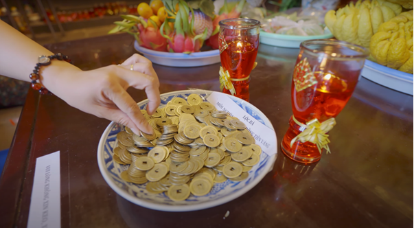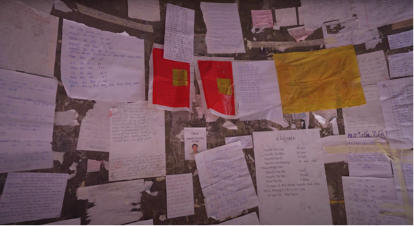 Phía trong hồng chung, có rất nhiều giấy dán tên tuổi, ngày tháng năm sinh của của cả người đang sống và đã mất. Nhiều người tin rằng, dán giấy tại đây có thể gửi theo tiếng chuông để cầu an cho bản thân và cầu siêu cho người đã mất.