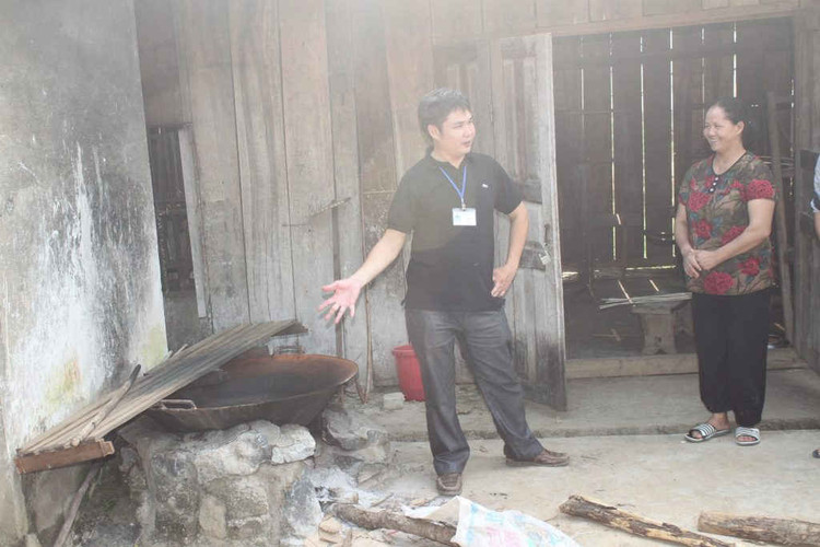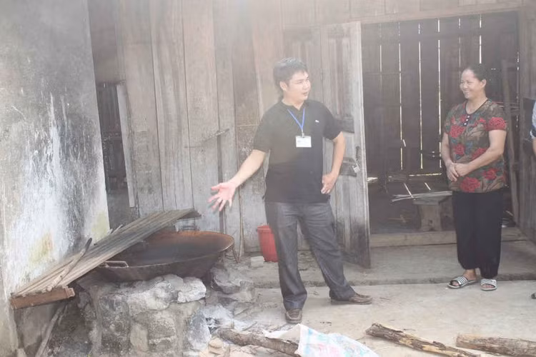 Chủ tịch UBND xã Lùng Tám giới thiệu về cách nhuộm vải Mông.