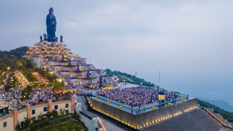 Ghi nhận từ sáng sớm, từng đoàn khách Ấn Độ đã có mặt tại đỉnh núi để bắt đầu hành trình vãn cảnh và chiêm bái. Bên cạnh chiêm bái các tôn tượng kỳ vĩ như Tượng Phật Bà Tây Bổ Đà Sơn cao nhất Châu Á trên đỉnh núi, tượng Bồ Tát Di Lặc bằng đá sa thạch lớn hàng đầu thế giới, hay tôn tượng hiếm hoi tại Việt Nam về Đức Phật Câu Na Hàm Mâu Ni, lịch trình của du khách cũng tập trung vào các không gian văn hóa Phật giáo, đặc biệt là nơi an vị ngọc xá lợi Đức Phật và Vườn Bồ Đề Thế giới.