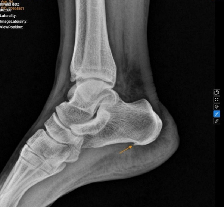 Đối với triệu chứng đau âm ỉ quanh vùng gót chân trái, kết quả chụp Xquang cho thấy, hình ảnh gai xương gót chân trái - nghi ngờ viêm cân gan chân mạn tính.