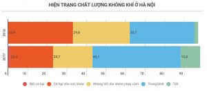 Theo báo cáo được đưa ra ngày 30/1 của Trung tâm Phát triển Sáng tạo Xanh (GreenID), dựa trên số liệu trạm đo tại Láng Hạ (Hà Nội) của Đại sứ quán (ĐSQ) Mỹ, năm 2017, chỉ số chất lượng không khí (AQI) tại thủ đô có 103 ngày ở ngưỡng trung bình, 14 ngày vượt quy chuẩn quốc gia, 257 ngày vượt quá tiêu chuẩn WHO.
