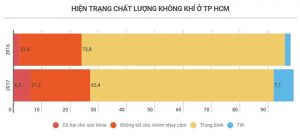 Trong khi đó, TP.HCM chỉ có 87 ngày chỉ số chất lượng không khí trung bình, 14 ngày vượt quá quy chuẩn quốc gia, 222 ngày vượt quá tiêu chuẩn WHO.