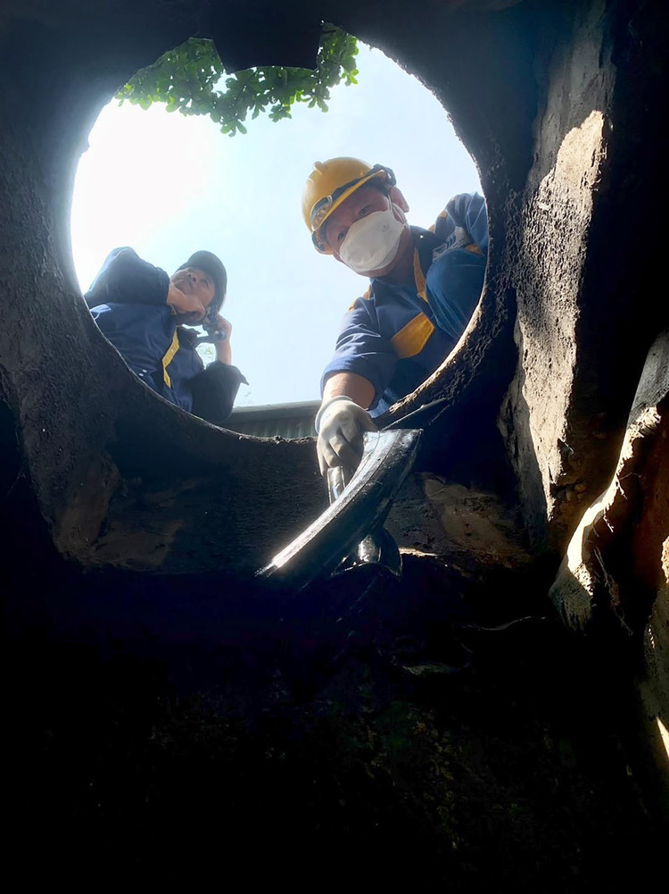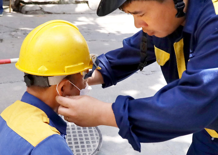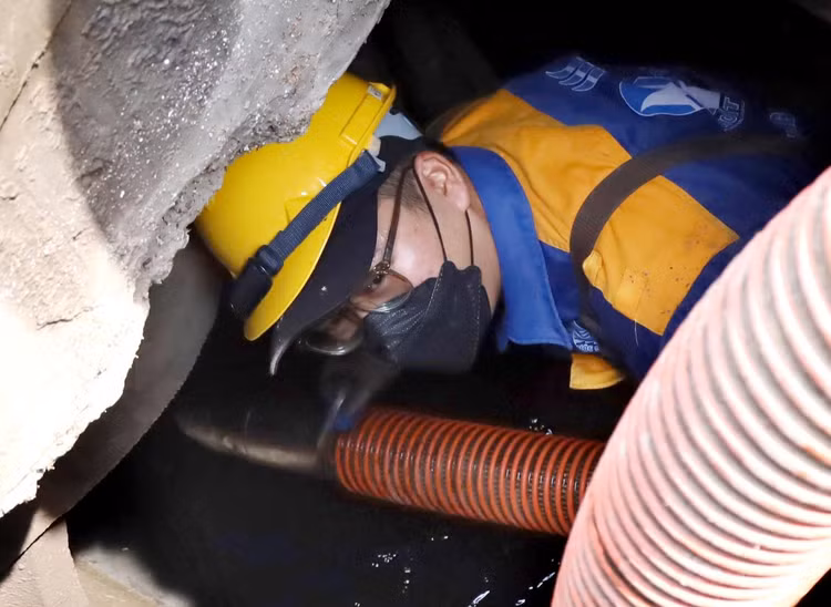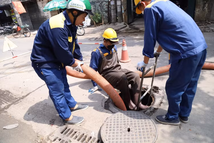 Công nhân dầm mình hàng giờ đồng hồ giữa lòng cống ngầm với nhiều loại rác thải, trong đó có nhiều chất thải độc hại, rác thải công nghiệp, y tế, xác động vật...