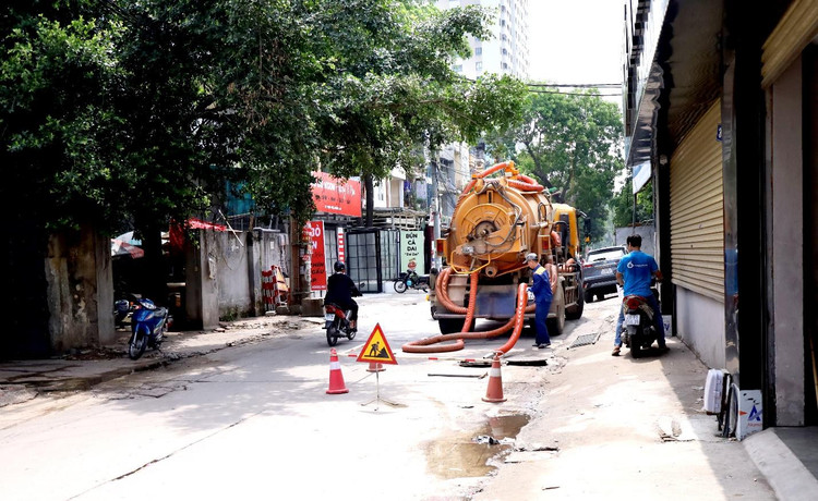 Vừa chui dưới lòng cống ngầm lên với nhễ nhại mồ hôi trên khuôn mặt, anh Nguyễn Tiến Thành vừa lau mồ hôi vừa trả lời: “Những công nhân trong lòng cống như chúng tôi vất vả lắm.Vô số những loại rác thải được đổ, ném xuống hệ thống thoát nước của thành phố, khiến cho nhiều khu vực khi mưa nước thải đã dồn ứ. Chính vì thế, chúng tôi đã dùng xe để hút bùn cũng như vét rác để khơi thông”.