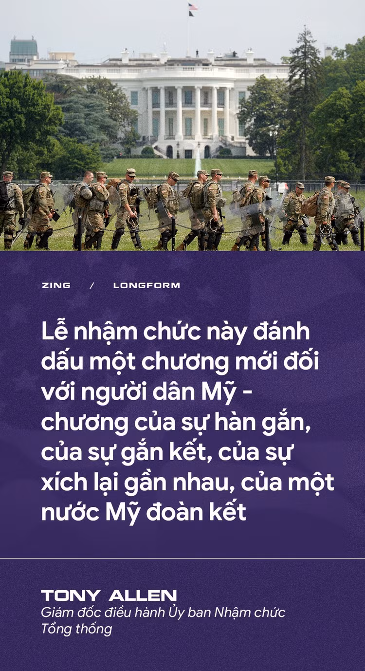 Trước nguy cơ bạo lực mà nhiều người nói là "khủng bố" có thể lặp lại, 25.000 lính Vệ binh Quốc gia được triển khai tại thủ đô Washington trong ngày 20/1. Con số này gấp 3 lần tổng số quân Mỹ được triển khai tại Iraq, Afghanistan, Somalia và Syria.