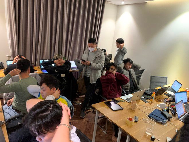 Đến ngày 19/12, Công an quận Hà Đông chủ trì bất ngờ kiểm tra 2 căn hộ trên, phát hiện 21 đối tượng đang sử dụng máy tính có kết nối internet thực hiện hành vi lừa đảo trên không gian mạng. Đây là các đối tượng có tuổi đời còn rất trẻ, từ 18-25 tuổi và thường trú tại nhiều tỉnh thành khác nhau. Ban chuyên án thu giữ ô tô Mercedes E300 mang BKS 30E-679.46; 21 máy tính xách tay; 40 điện thoại di động; 42 tài khoản ngân hàng, đã phong tỏa khoảng 1 tỷ đồng trong tài khoản.
