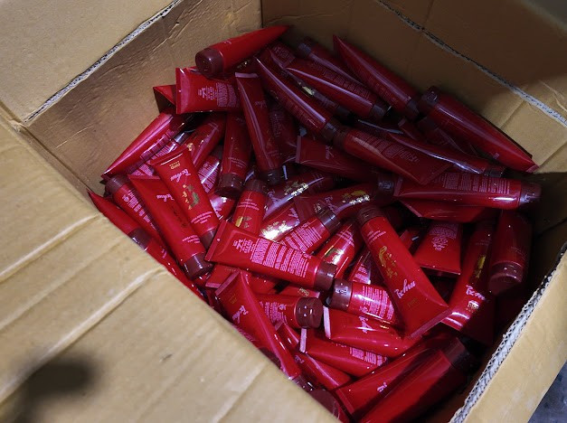 Tại hiện trường, công an thu giữ hàng ngàn sản phẩm mỹ phẩm giả mang các thương hiệu nổi tiếng như Vichy, My Gold Korea Red Ginseng…, cùng nhiều máy móc, thiết bị, nguyên liệu, vật tư phục vụ việc sản xuất.