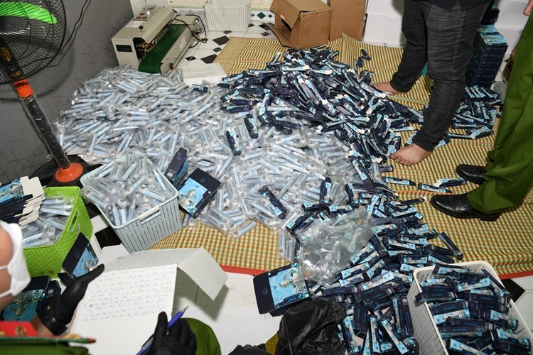 Toàn bộ bao bì, nhãn mác thuốc lá điện tử được Thơ đặt thiết kế riêng làm độc quyền và có chế độ bảo hành, đổi trả với các sản phẩm lỗi. Để tránh bị phát hiện, chúng thường xuyên thay đổi kho xưởng và khi thấy có dấu hiệu bị phát hiện thì xóa nhóm bán hàng, lập kênh mới. Tại hiện trường, cảnh sát thu hơn 3.500 điếu thuốc lá thành phẩm đã được bơm tinh dầu ma túy, 5 can nhựa chứa 84 lít dung dịch ma túy, máy bơm tinh dầu, linh kiện lắp ráp hơn 10.000 điếu thuốc lá điện tử, một triệu vỏ thuốc lá sợi cùng nhiều dung môi, hóa chất, nhãn mác khác. Cảnh sát còn thu gần 15.000 thuốc lá điện tử được nhập lậu đang chờ bán ra thị trường.