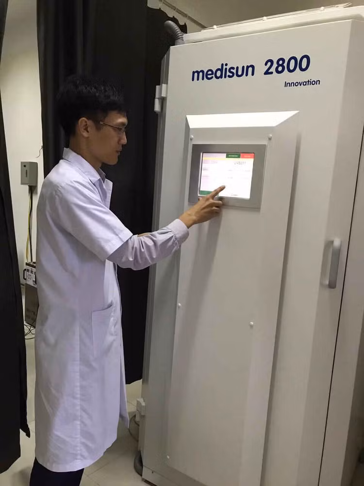 Khi cần chiếu, bạn đến đăng ký khám miễn phí vào phòng khám chiếu ánh sáng UVA Bệnh viện Da liễu T.Ư. Bác sĩ sẽ khám, tư vấn và chỉ định liều chiếu, phương pháp chiếu.