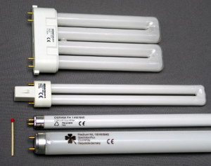 Các loại bóng đèn huỳnh quang phổ biến hiện nay gồm có bóng đèn huỳnh quang T10, T8, T5, và đèn huỳnh quang compact CFL. Trong đó các loại bóng T10, T8, T5 khác nhau về đường kính bóng, và phân biệt hiệu quả cũng theo đó mà khác nhau.