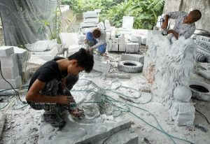 Người ta nghiền đá ra trộn với keo để đúc theo những hình thù tùy thích. Tuy nhiên, bằng mắt thường thì có thể quan sát được đâu là đá được tạc từ khối đá, đâu là đá đúc.