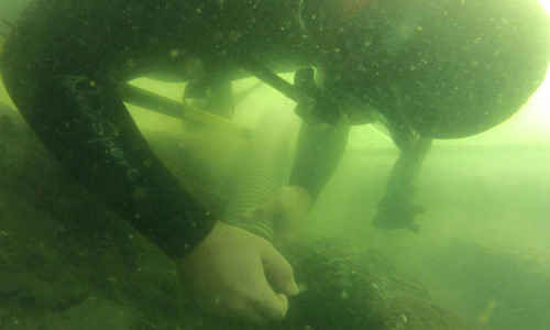 Một nhà khảo cổ thuộc ĐH West Florida tại địa điểm khai quật xác tàu đắm Tây Ban Nha. Ảnh: ĐH West Florida.