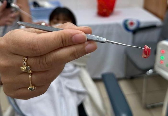 Ngay khi phát hiện dị vật, các bác sĩ Khoa Tai Mũi Họng đã tiến hành gây tê và nội soi lấy dị vật, thủ thuật được thực hiện nhanh chóng, an toàn và chính xác.