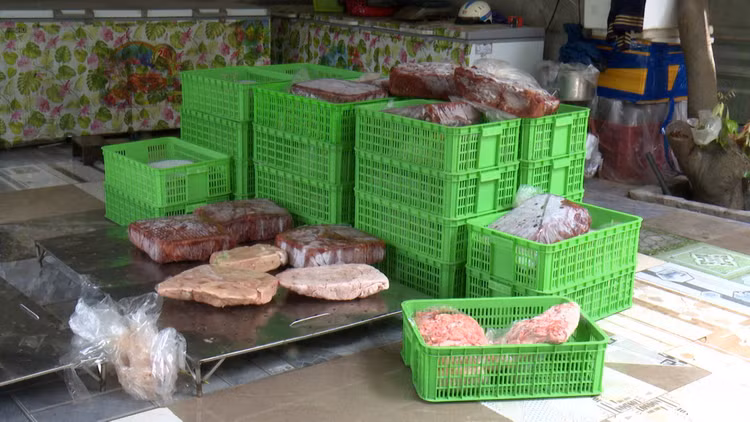 Kết quả tại thời điểm kiểm tra, Đoàn phát hiện Hộ kinh doanh Lê Hồng Thoanh đang kinh doanh 1.260 kg thực phẩm đông lạnh gồm 120 túi gan gà đóng túi (10kg/túi) và 6 túi lòng lợn đóng túi (10kg/túi), không đảm bảo vệ sinh an toàn thực phẩm, không rõ nguồn gốc, xuất xứ.