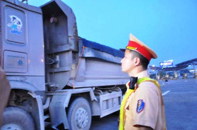 Lực lượng CSGT kiểm tra xe tải trên tuyến cao tốc.