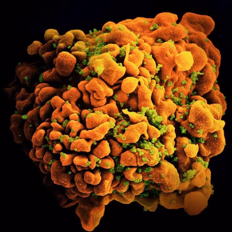 Ảnh hiển vi điện tử quét tế bào T nhiễm HIV. Ảnh: NIAID