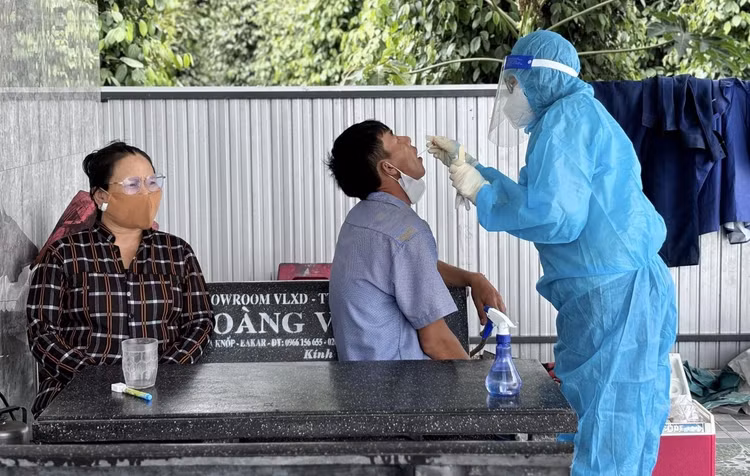 Trung tâm Kiểm soát bệnh tật (CDC) tỉnh Đắk Lắk lấy mẫu xét nghiệm các thành viên trong gia đình ông T. để xét nghiệm nhằm phòng ngừa nguy cơ lây nhiễm dịch cúm A (H5N1) từ gia cầm sang người/Ảnh daklak.gov.vn