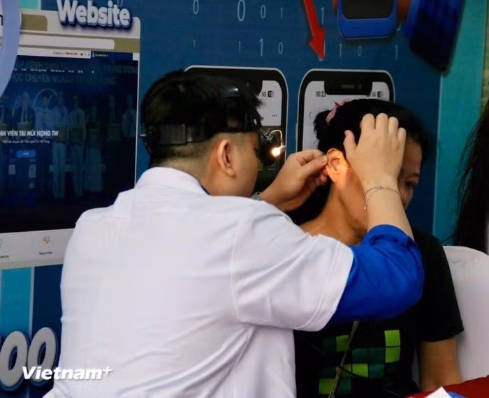 Sau khi đo các chỉ số cơ bản như huyết áp, chiều cao, cân nặng và đánh giá chỉ số BMI, người dân lần lượt bước vào các khu vực khám chuyên khoa sâu.Ảnh: Bảo Ngọc/Vietnam+