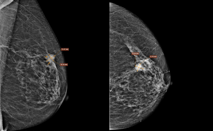 Chụp X-quang tuyến vú ghi nhận nốt tăng đậm độ nhu mô vú trái, phân loại BIRADS 5. Ảnh Medlatec