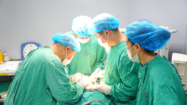 Ca phẫu thuật do BS.CKI. Đỗ Việt Dũng, Phụ trách khoa Ung bướu trực tiếp thực hiện cùng ê-kíp Bệnh viện A. Ảnh BV