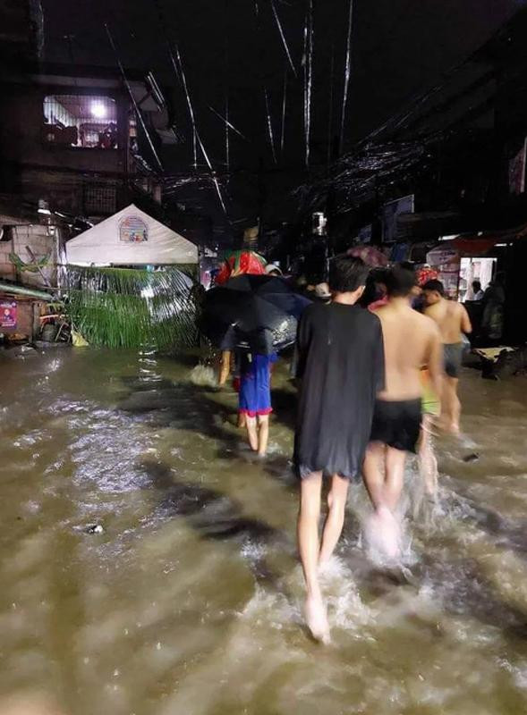 | Siêu bão Noru mang theo mưa lớn gây ngập lụt ở San Miguel, Bulacan, Philippines. Ảnh: Inquirer |