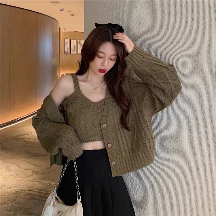 Set áo len cardigan: Bao gồm áo len khoác ngoài và áo len mặc trong dạng 2 dây dáng croptop. Cách phối này không chỉ khiến người mặc trông quyến rũ hơn mà còn trở nên rất sành điệu.