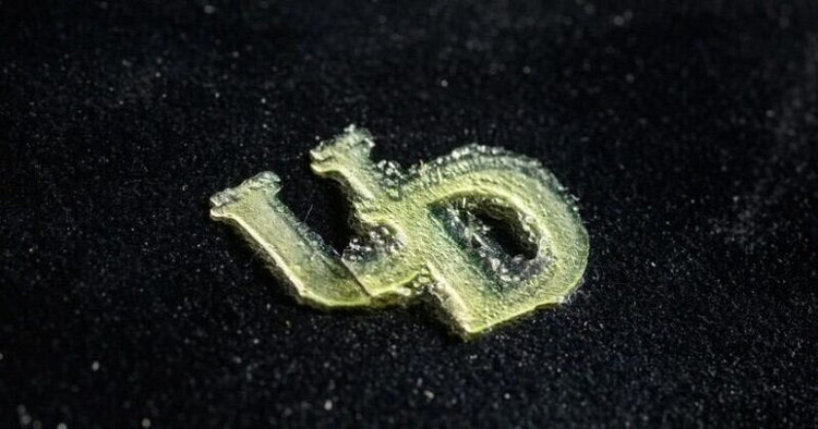 Chữ UD lồng vào nhau, chế tạo từ in 3D nhựa, sản xuất từ sinh khối lignin kỹ thuật mang theo mùi hương. Ảnh Đại học Delaware.